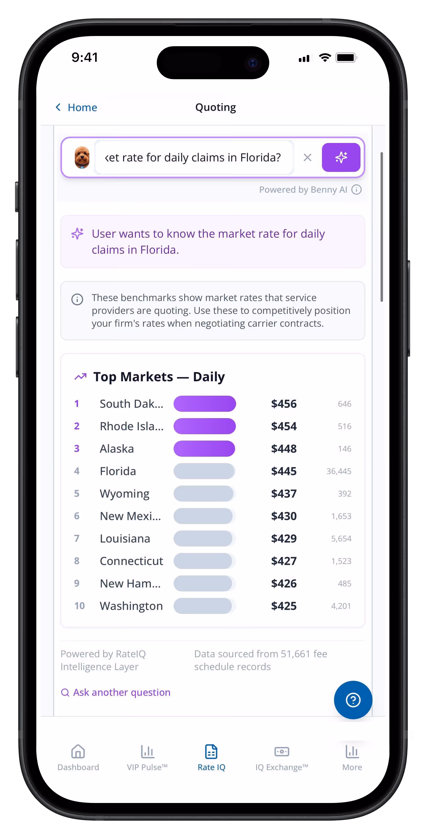 RateIQ™ is powered by VIP Software's proprietary data infrastructure — derived from real claims transactions across a growing national network.
