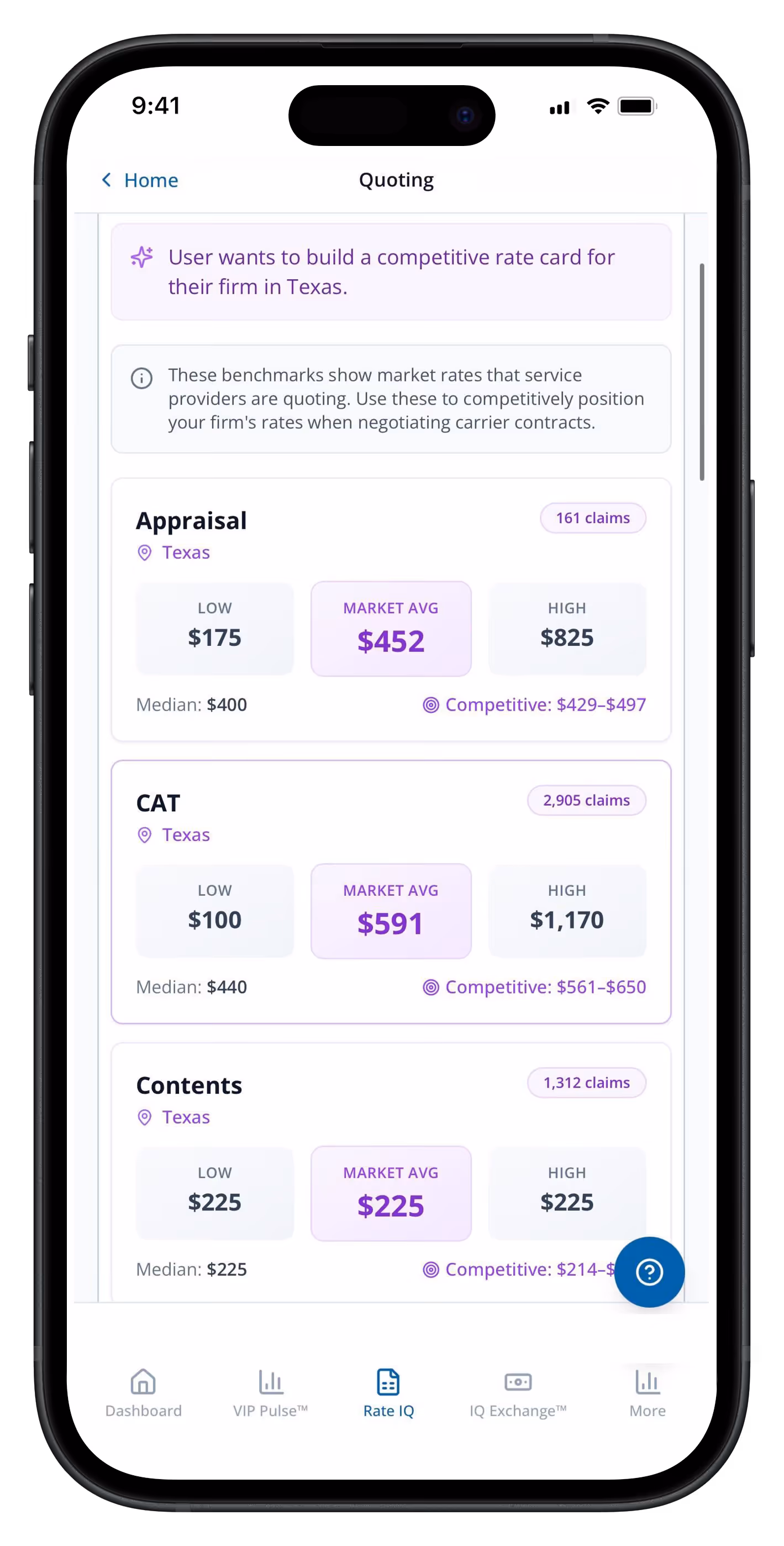 The pricing intelligence in Rate IQ™ comes from inside actual claims workflows — not web scraping, not surveys, not modeled estimates. This is what makes it defensible.